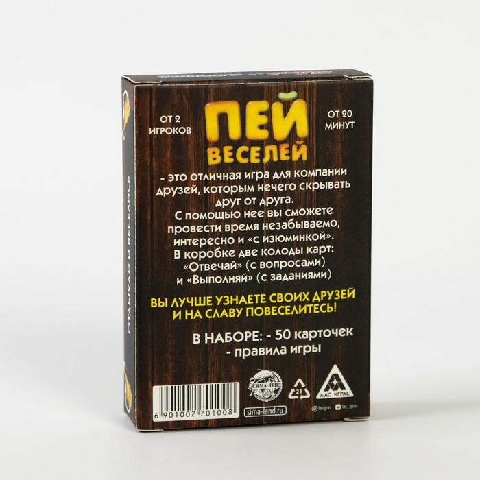 Купить игра для компании "пей веселей" 50 карт от 180 руб. с доставкой до пункта выдачи в Звенигово. Интернет магазин ДекаМаркет. Оплата при получении.
